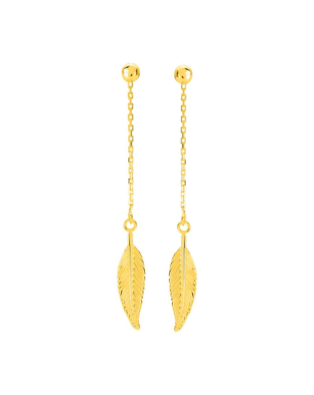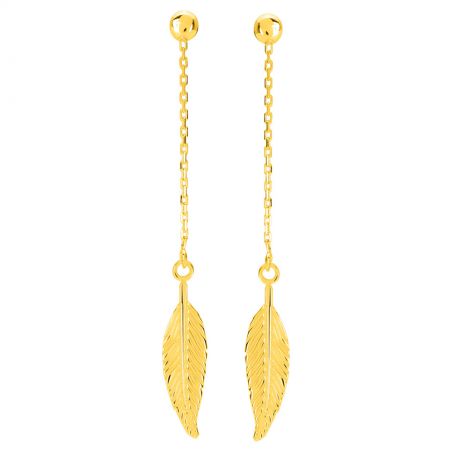 Deze 9 karaat gouden oorbellen zijn gevederde oefeningen. Ze sluiten met behulp van een vlinder.