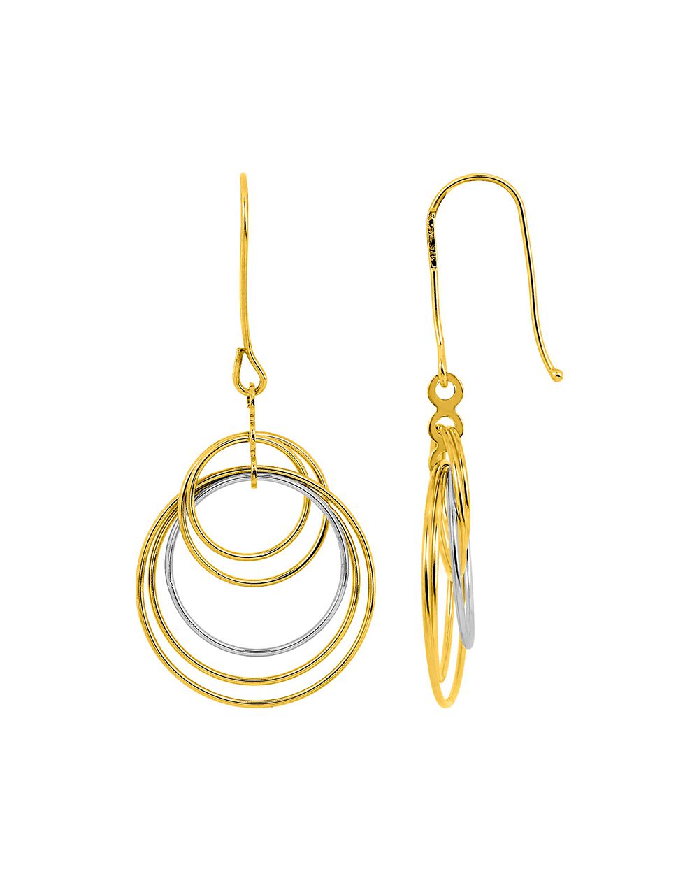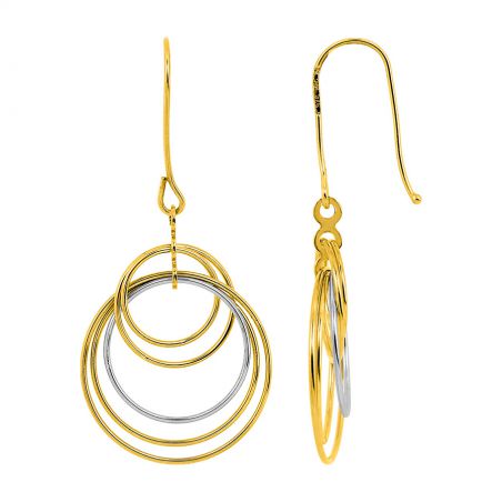 Deze 9 karaat gouden oorbellen zijn oorbellen bestaande uit verschillende cirkels van verschillende kleuren. Ze zijn 24 mm hoog.