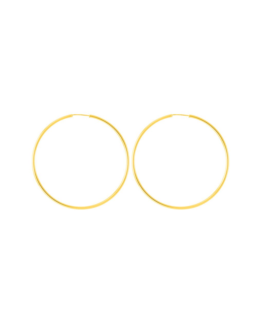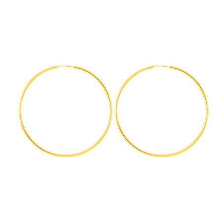 Deze 9 karaat gouden oorbellen zijn Creolen met een diameter van 50 mm. De draad is 1,5 mm dik.