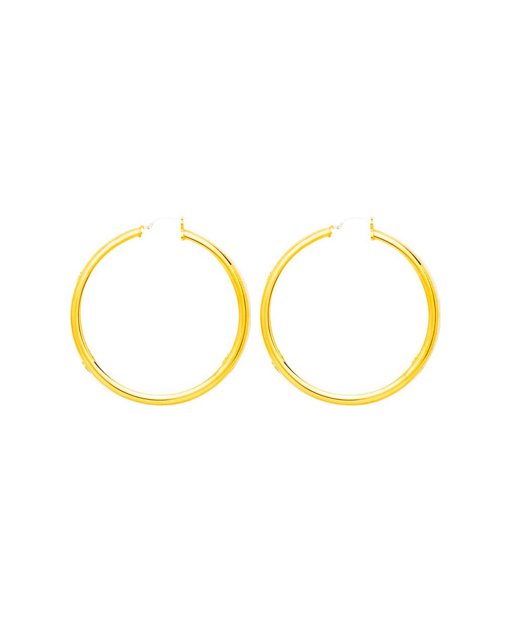Deze 9 karaat gouden oorbellen zijn Creolen met een diameter van 35 mm. De draad is 2,5 mm dik.