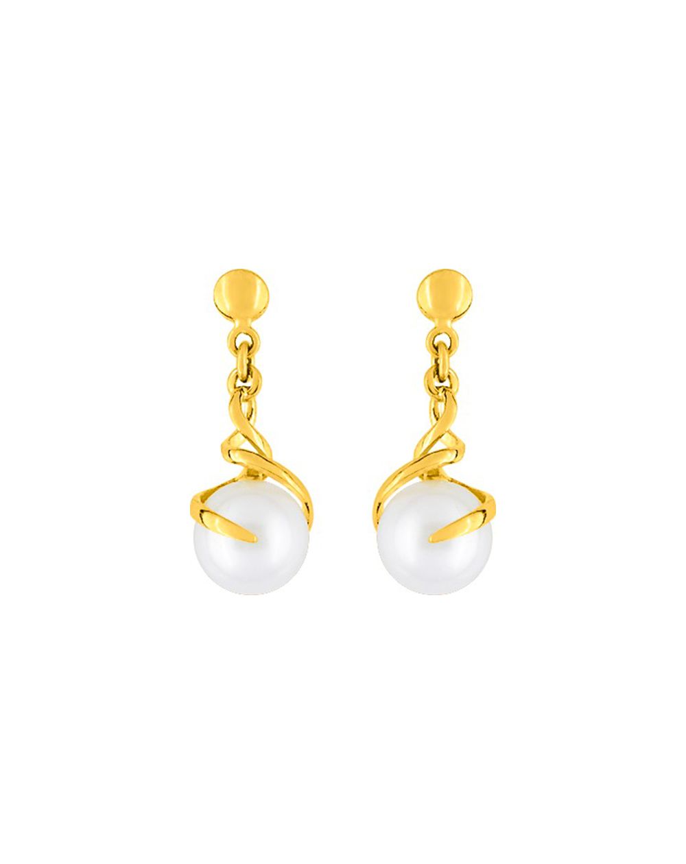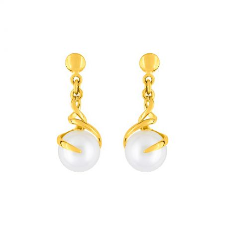 Deze 9 karaat gouden oorbellen zijn gedraaide boren met een zoetwatercultuurparel met een diameter van 6 mm.
