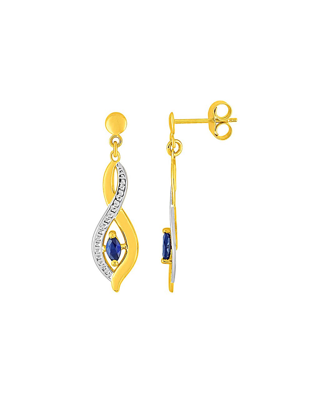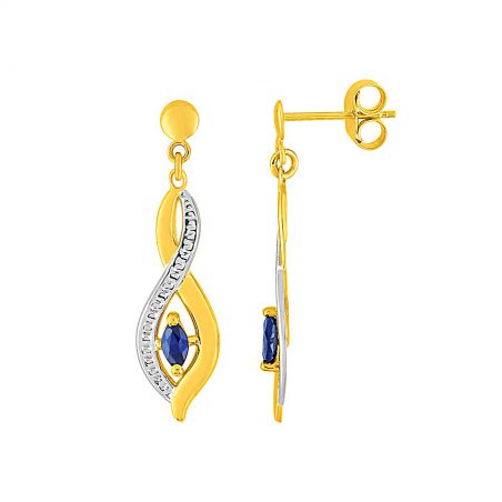 Deze 9 karaat gouden oorbellen zijn saffierboren. Ze zijn 25 mm hoog.