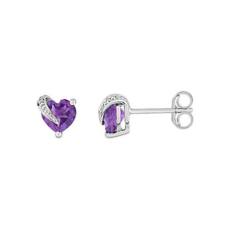Deze 9 karaat gouden oorbellen zijn hartvormige boren ingesteld met een amethist.