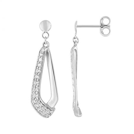 Deze 9 karaat gouden oorbellen zijn gedraaide oorbellen ingesteld met zirkoniumoxidestenen. Ze zijn 25 mm hoog.