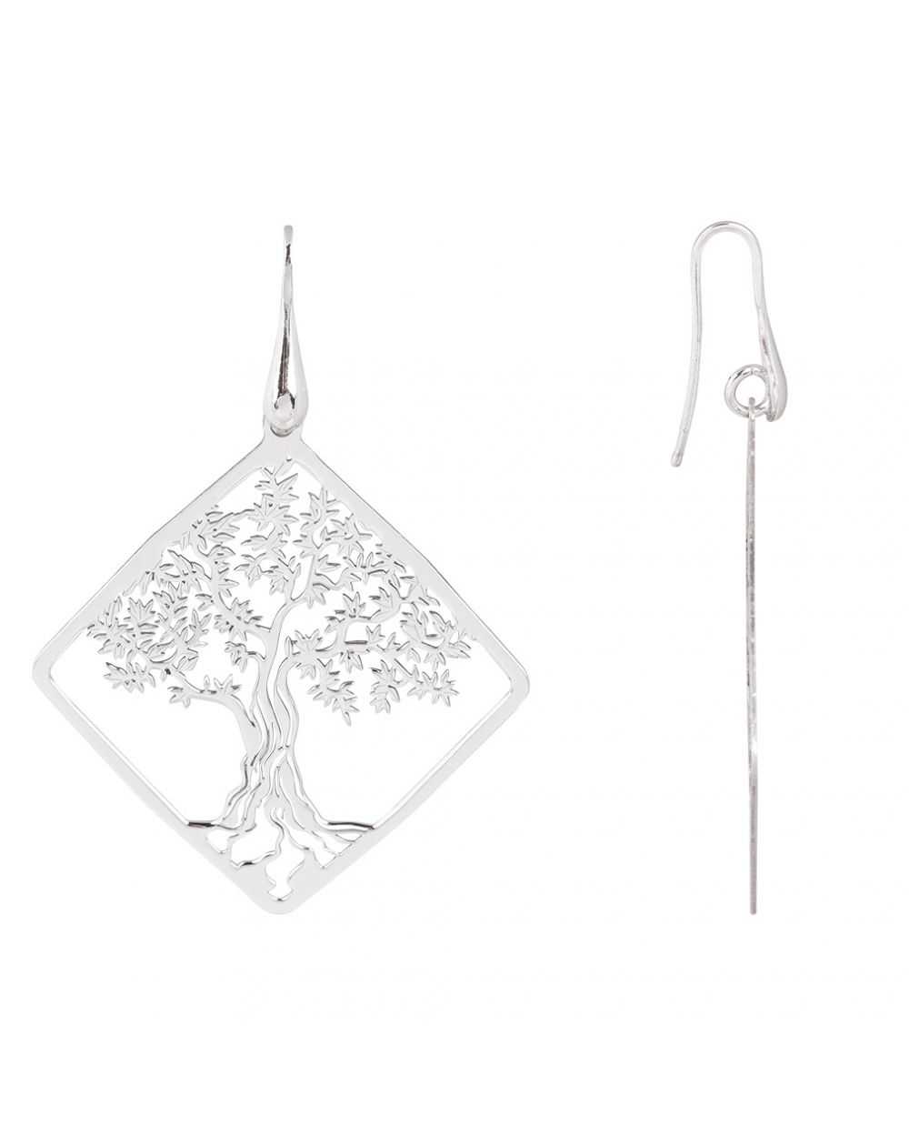 Deze 925 zilveren oorbellen zijn haakoorbellen voor vrouwen gevormd uit een vierkant gesneden uit een levensboom.