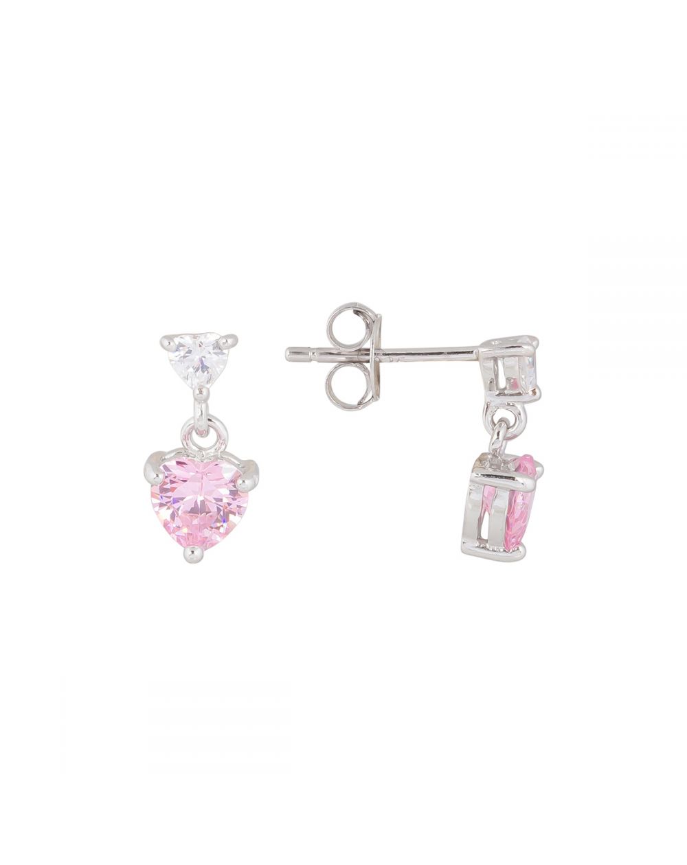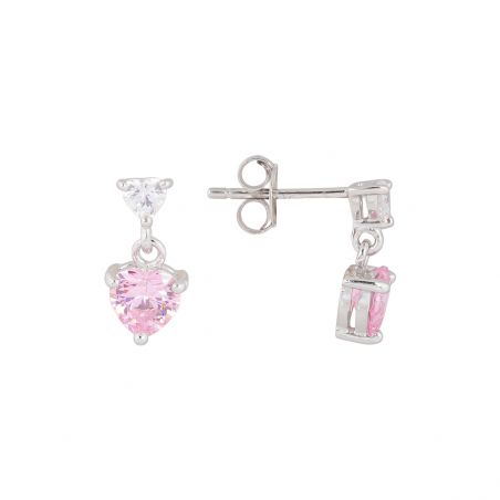 Deze 925 zilveren oorbellen zijn boortjes met 2 hartjes waarvan 1 roze, deze zijn 12mm hoog.