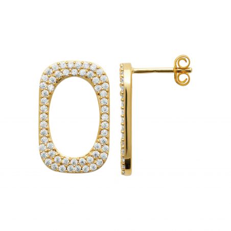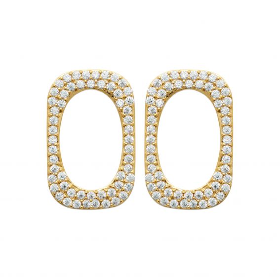 Deze 18k goud vergulde oorbellen zijn boortjes bezet met zirkoniumoxide steentjes.