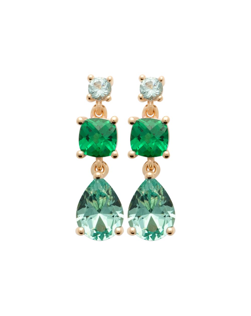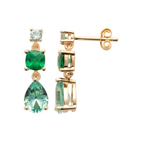 Deze 18k goud vergulde oorbellen zijn boortjes bezet met gekleurde stenen.