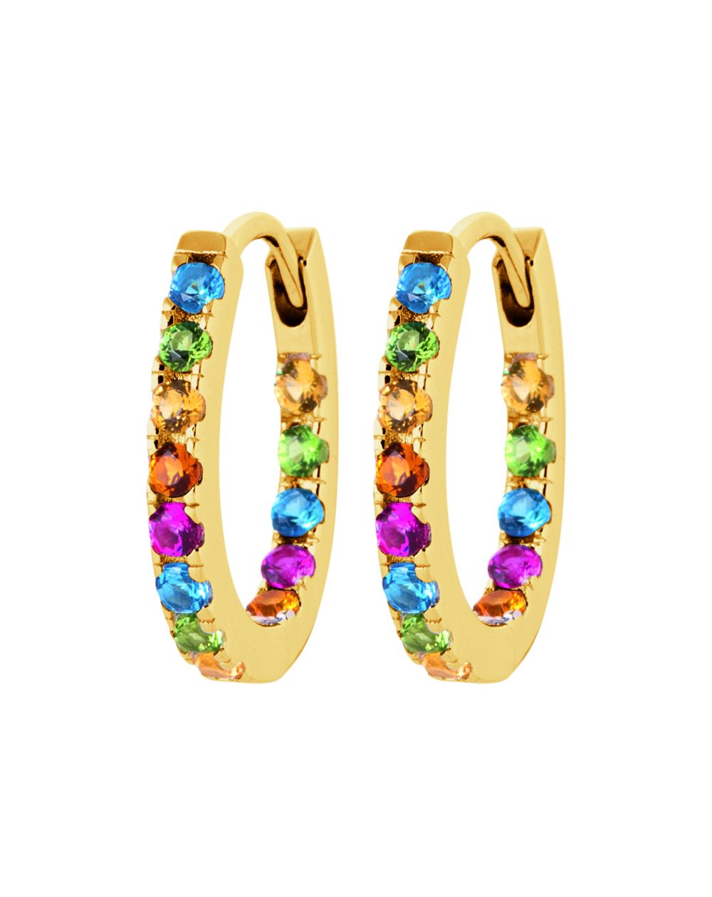 Deze 18 karaat vergulde oorbellen zijn creolen met veelkleurige stenen.