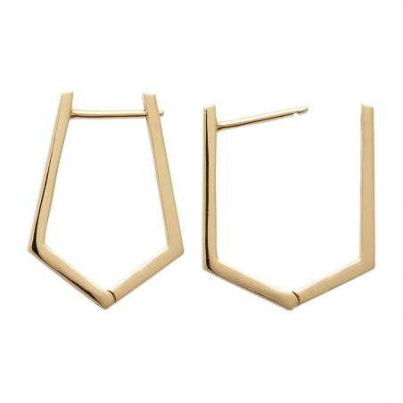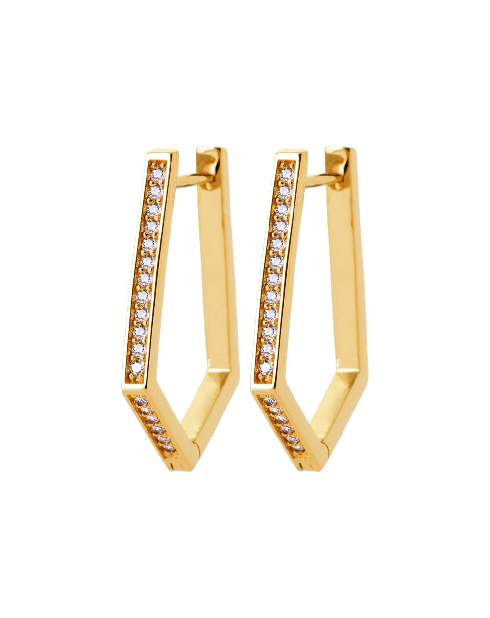 Deze 18 karaats vergulde oorbellen zijn geometrische hoops bezet met zirkoniumoxide stenen.