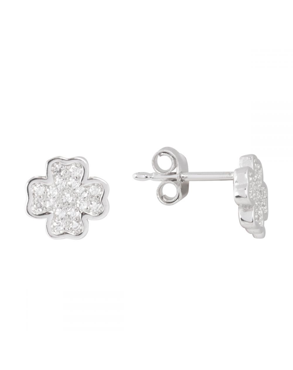 Deze 925 zilveren oorbellen zijn klavervormige boortjes bezet met zirkoniumoxide steentjes.