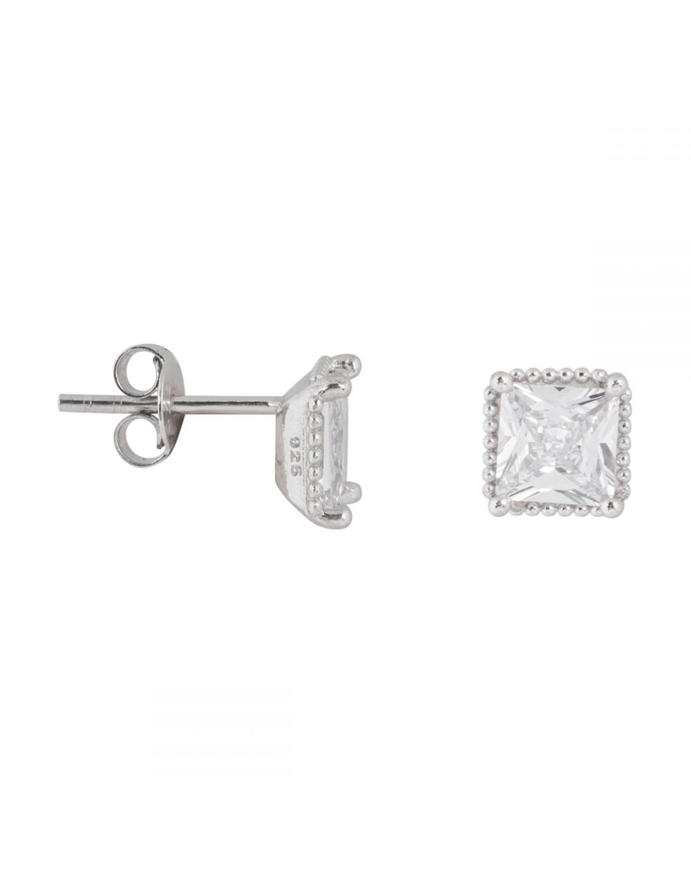 Deze 925 zilveren oorbellen zijn boortjes gezet met een zirkoniumoxide steen. Deze zijn 8 mm in het vierkant.