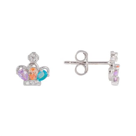Deze 925 zilveren oorbellen zijn kroonvormige boortjes bezet met zirkoniumoxide steentjes.