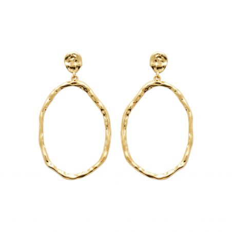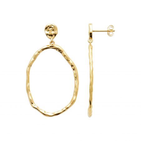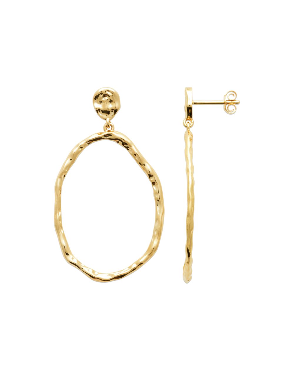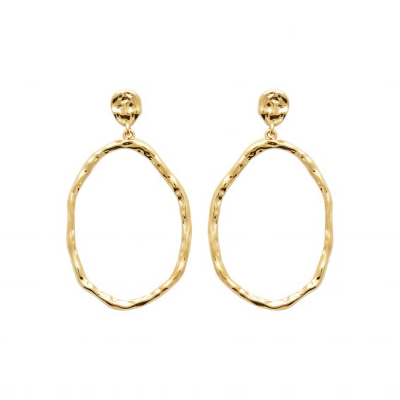 Deze 18k vergulde oorbellen zijn een boor met een gehamerde ovale open bungel