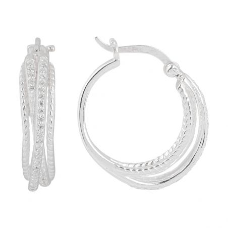 Deze oorbellen van 925 zilver zijn oorringen bestaande uit verschillende lijnen, waarvan de 2 centrale bezet zijn met zirkoniumoxidestenen.