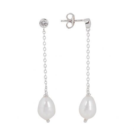 Deze 925 zilveren oorbellen zijn boren gevormd uit een zirkoniumoxidesteen en een vallende gekweekte parel.