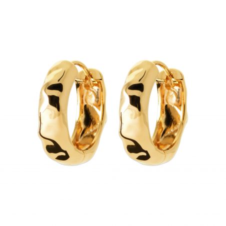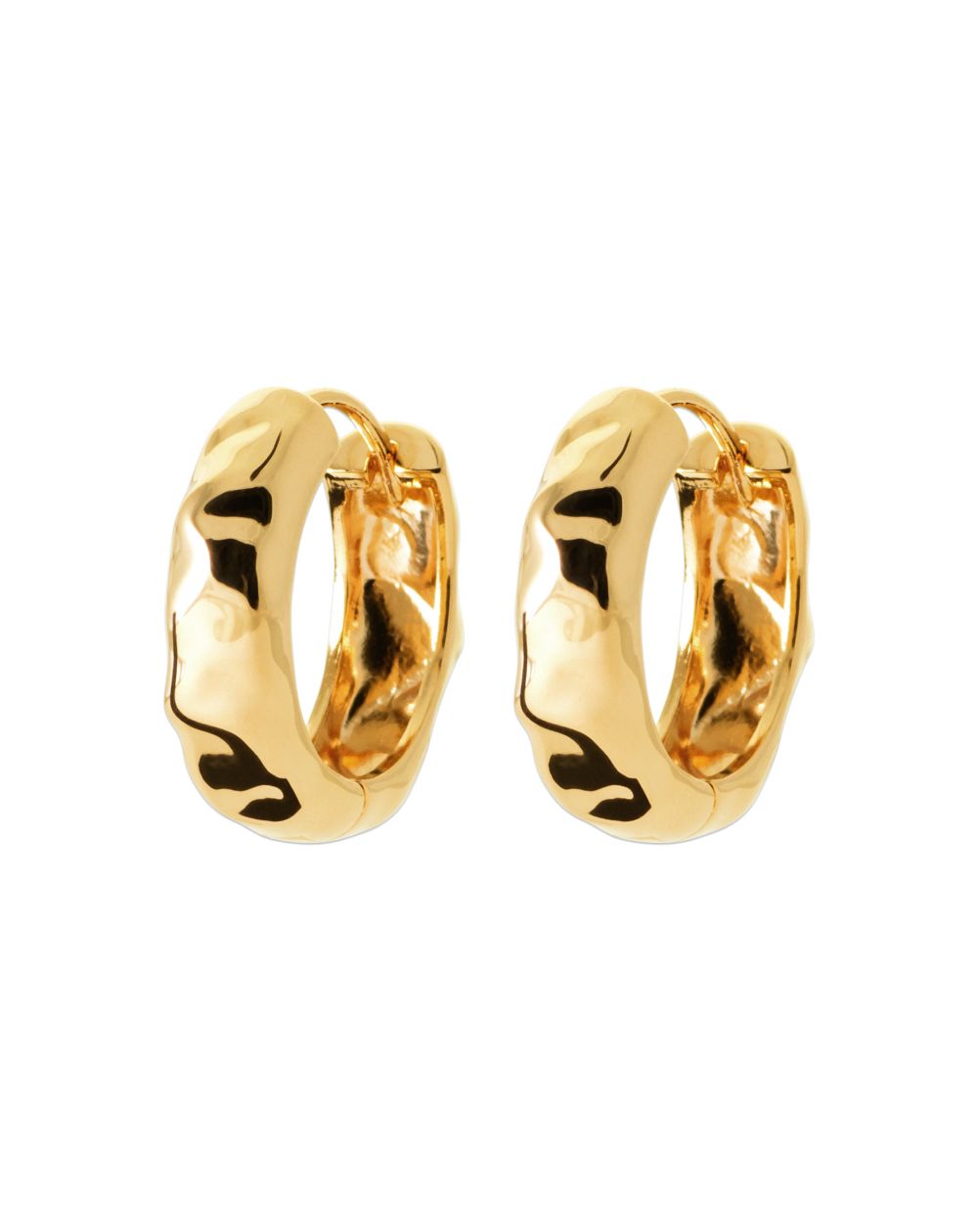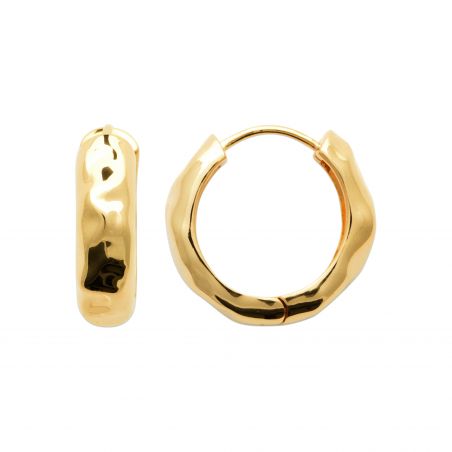 Deze 18k vergulde oorbellen zijn kleine, brede gehamerde oorringen met een diameter van 18 mm en een breedte van 5 mm.