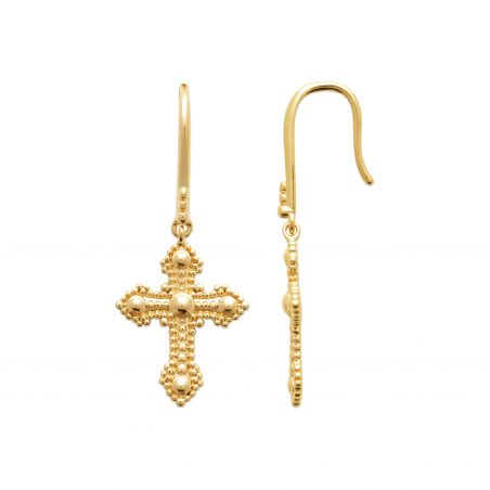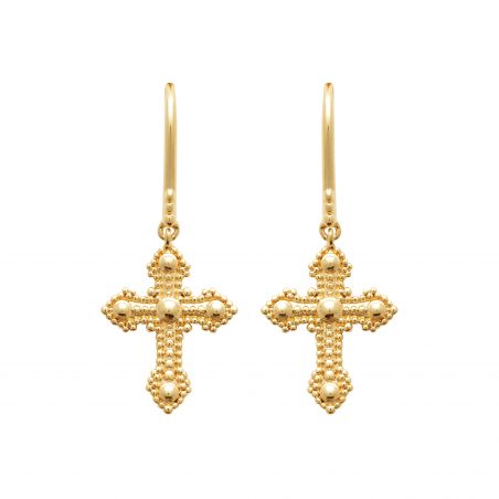 Deze 18k vergulde oorbellen zijn kruisvormige haakoorbellen.