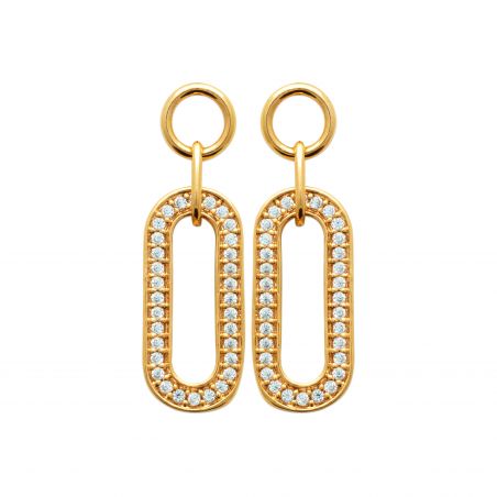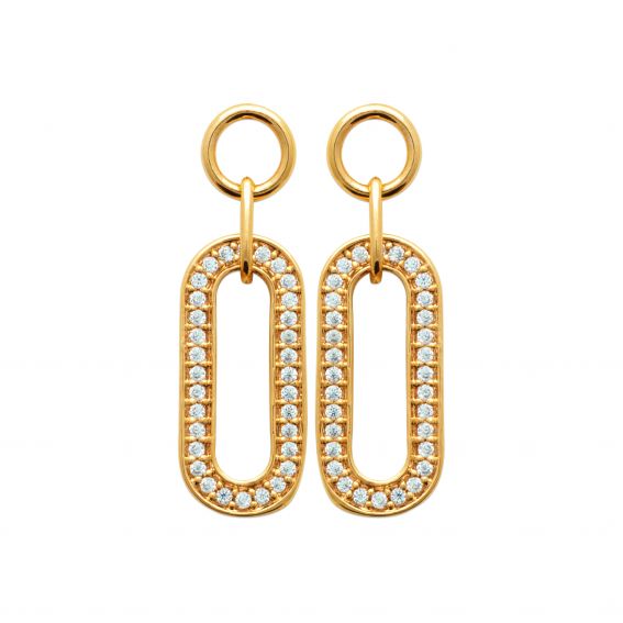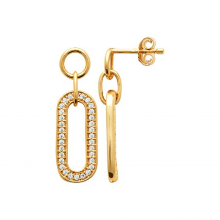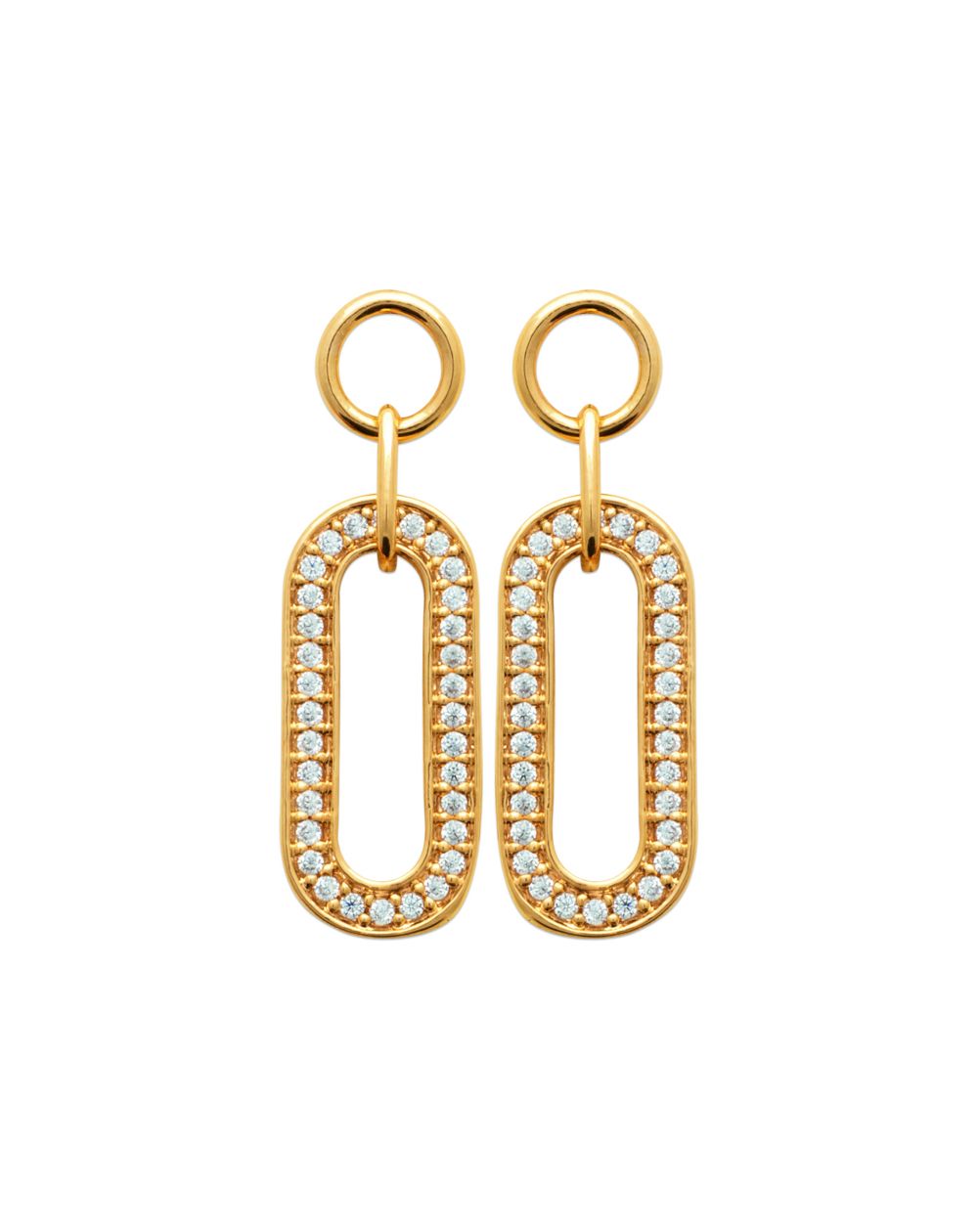 Deze 18-karaats vergulde oorbellen zijn langwerpige ovale edelsteenoorbellen.