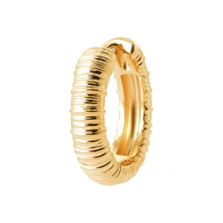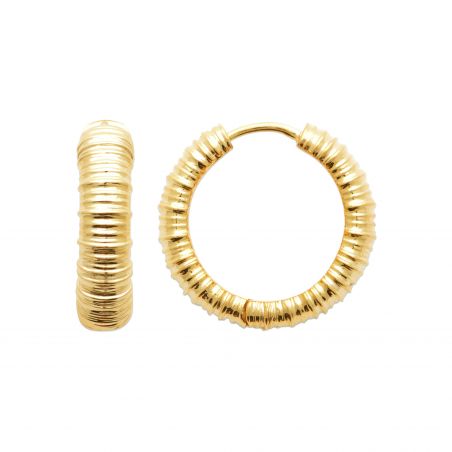 Deze 18-karaats vergulde oorbellen zijn gestreept oorringen, hun diameter is 20 mm.