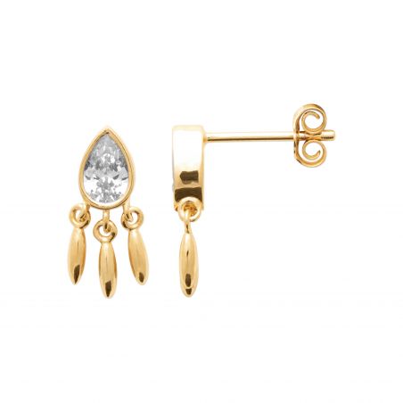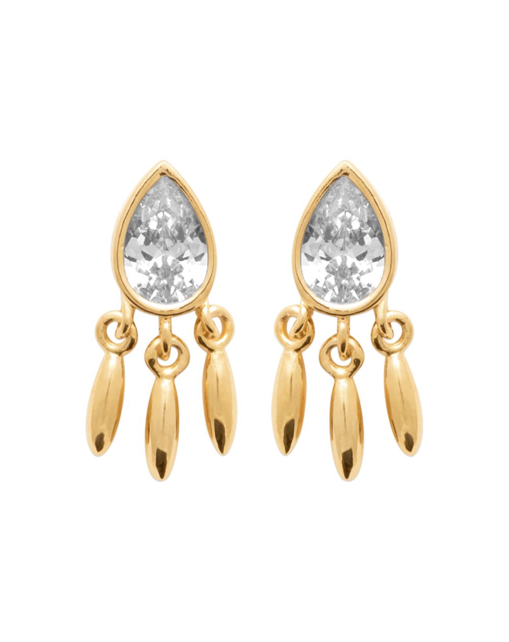 Deze 18k vergulde oorbellen zijn druppelvormige edelsteenoorbellen en hebben 3 bungelende baguettes.