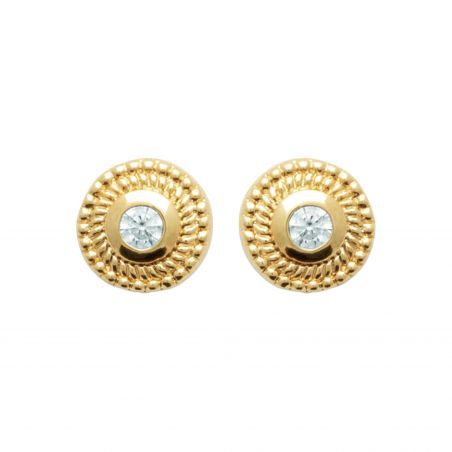 Deze 18k vergulde oorbellen zijn schijfvormige edelsteenboren.
