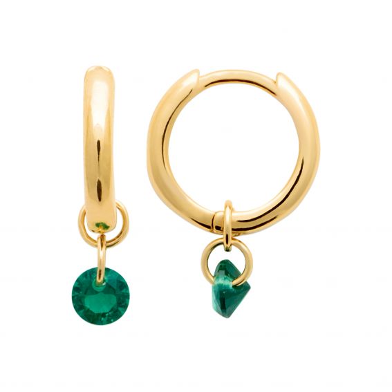 Dit paar groene oorringen in 18 karaat verguld goud is bezet met groene steen, deze steen is afneembaar en kan ook uit de groene oorringen worden gehaald.