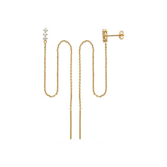 Deze 18 karaat vergulde oorbellen zijn boortjes gemaakt van 3 zirkoniumoxides en ketting.