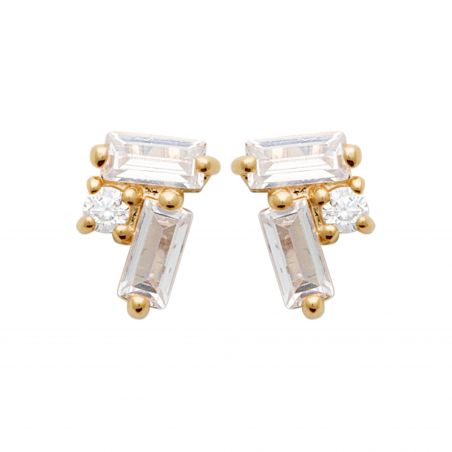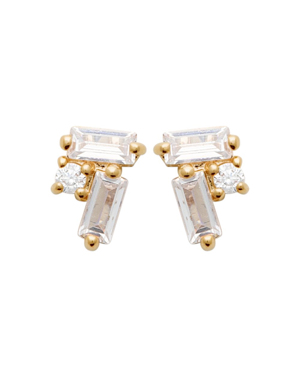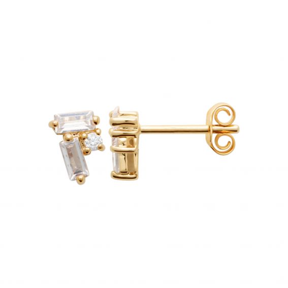 Deze kleine 18-karaats vergulde Selena oorbellen zijn boortjes gemaakt van 3 zirkoniumoxide staafjes.