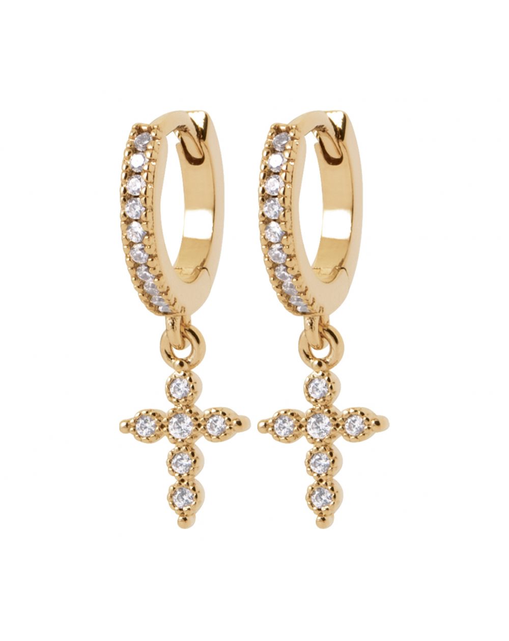 Deze moderne gouden kruisoorbellen zijn ideaal voor wie van betekenisvolle sieraden houdt. U kunt ze afzonderlijk of in laagjes dragen.