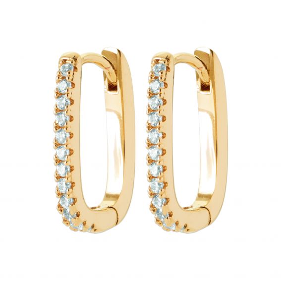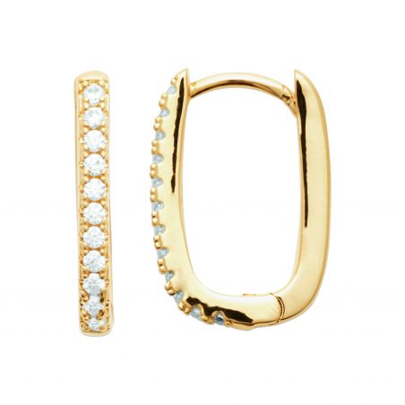Breng een vleugje luxe in je stijl met dit prachtige paar stenen oorringen , gemaakt van 18-karaats verguld goud voor een warme en elegante glans. Elke hoepel is versierd met sprankelende zirkoniastenen, die een verfijnde en verfijnde glans bieden.