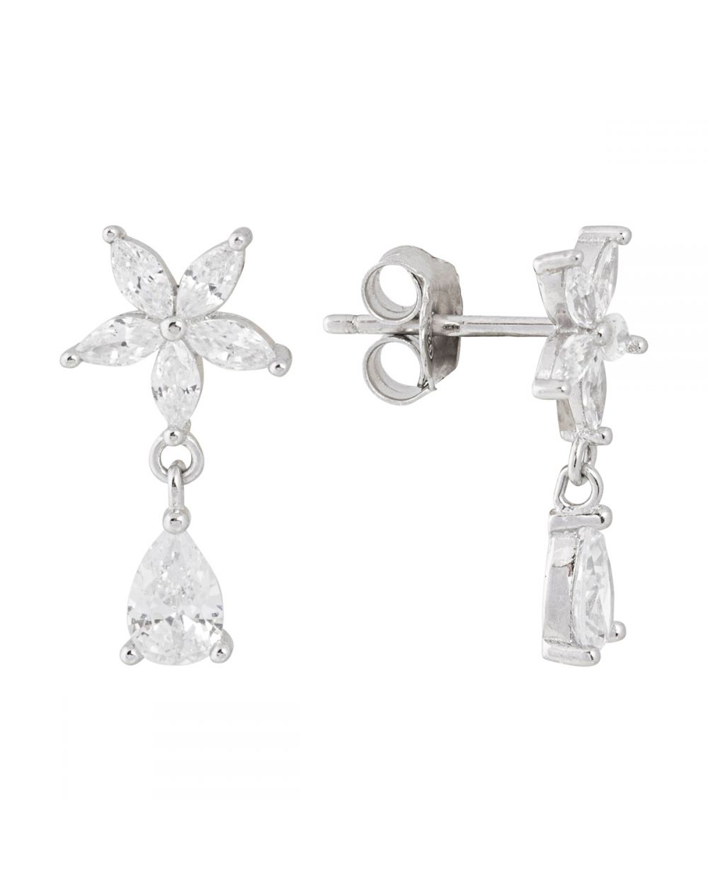 Elke damesoorbel is subtiel versierd met glinsterende zirkoniastenen, gerangschikt in een levendig bloemmotief, aangevuld met een bungelende traansteen. Deze minuscule details vangen en reflecteren licht, waardoor een lichtgevend en verfijnd effect ontstaat.