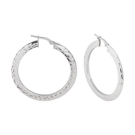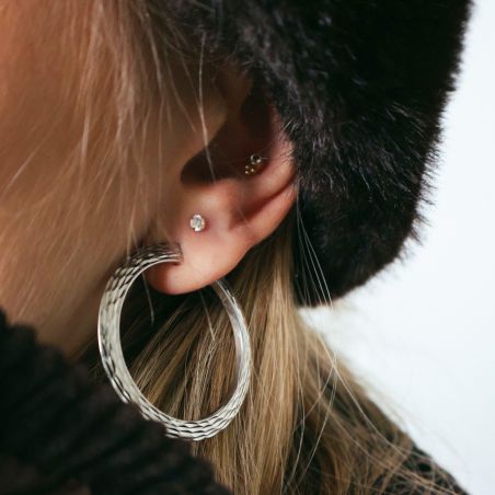 Gehamerde oorbellen zijn perfect voor wie op zoek is naar een sieraad dat zowel chique als trendy is, geschikt voor zowel casual outfits als speciale gelegenheden. Hoogwaardig 925 zilver garandeert duurzaamheid en glans, met respect voor de meest gevoelige huid.