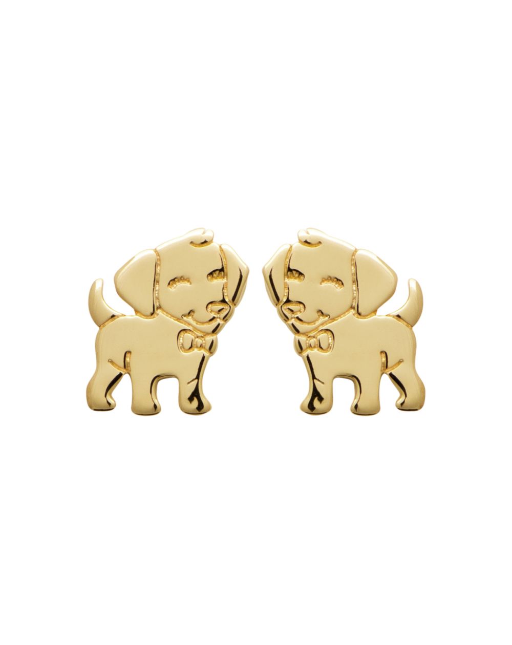 Deze vergulde oorbellen hebben een schattig, gestileerd hondenhangertje, versierd met een klein strikje. Het delicate en speelse ontwerp zal dierenliefhebbers aanspreken en een vleugje tederheid toevoegen aan al uw outfits. Ideaal als cadeau of om dagelijks te dragen voor een charmante en originele look.