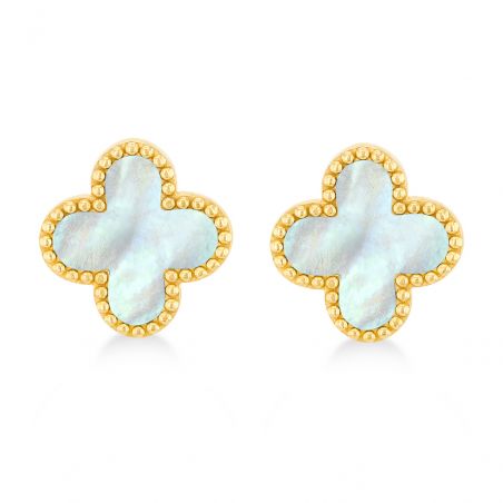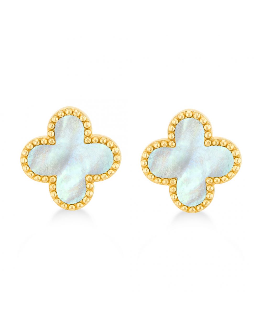 Bijoux or et personnalisé 9 karaat geelgouden parelklavertjevier oorbellen