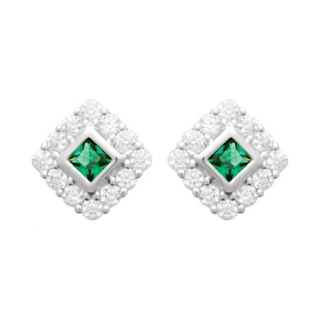 Deze zilveren oorbellen betoveren met hun verfijnde, vierkante ontwerp , waarin een centrale smaragdgroene steen centraal staat. De steen is vierkant geslepen voor een intense en geraffineerde schittering. De groene steen wordt omringd door sprankelende witte stenen , wat een verfijnd en harmonieus contrast creëert.