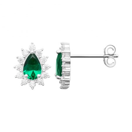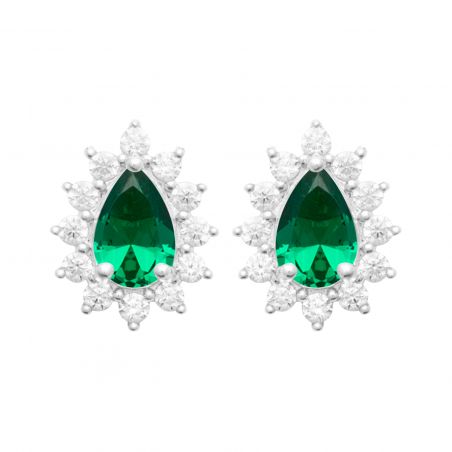 Geïnspireerd door de iconische Diana- stijl, betoveren deze groene Diana-oorringen van gerhodineerd 925 sterling zilver met hun tijdloze elegantie en verfijnde schittering. De peervormige groene middensteen, omlijst door een stralende halo van witte zirkonia, roept de grandeur van formele sieraden op, maar blijft tegelijkertijd betaalbaar.