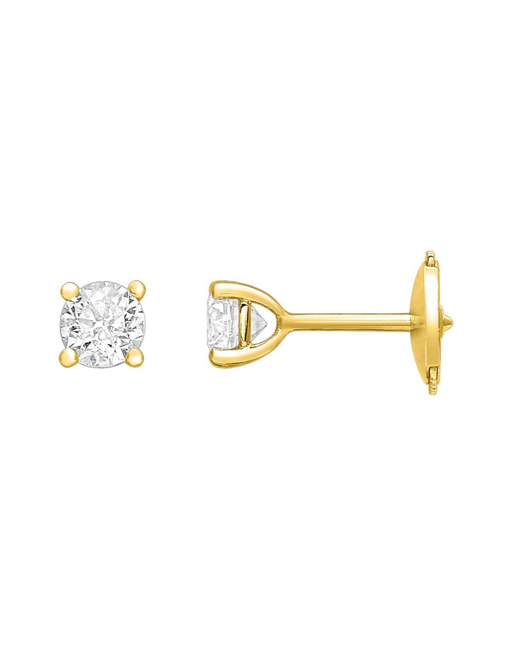 Deze stralende en onmiskenbaar elegante oorknopjes van 18-karaats geelgoud (Au 750) zijn bezet met ronde, in het laboratorium gekweekte diamanten met een totaal gewicht van minimaal 0,60 karaat . Hun opvallende aanwezigheid voegt een kostbaar en sprankelend accent toe, terwijl de ingetogen elegantie van een ware sieradenklassieker behouden blijft.