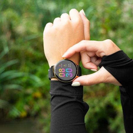 Dit horloge van het merk OOZOO is een verbonden horloge dat compatibel is met Android en iPhone. De gehele wijzerplaat is voelbaar. Deze heeft een diameter van 45 mm en een dikte van 12 mm.