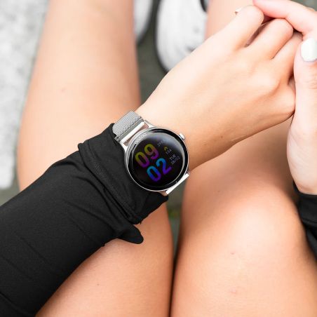 Dit horloge van het merk OOZOO is een verbonden horloge dat compatibel is met Android en iPhone. De gehele wijzerplaat is voelbaar. Deze heeft een diameter van 45 mm en een dikte van 12 mm.