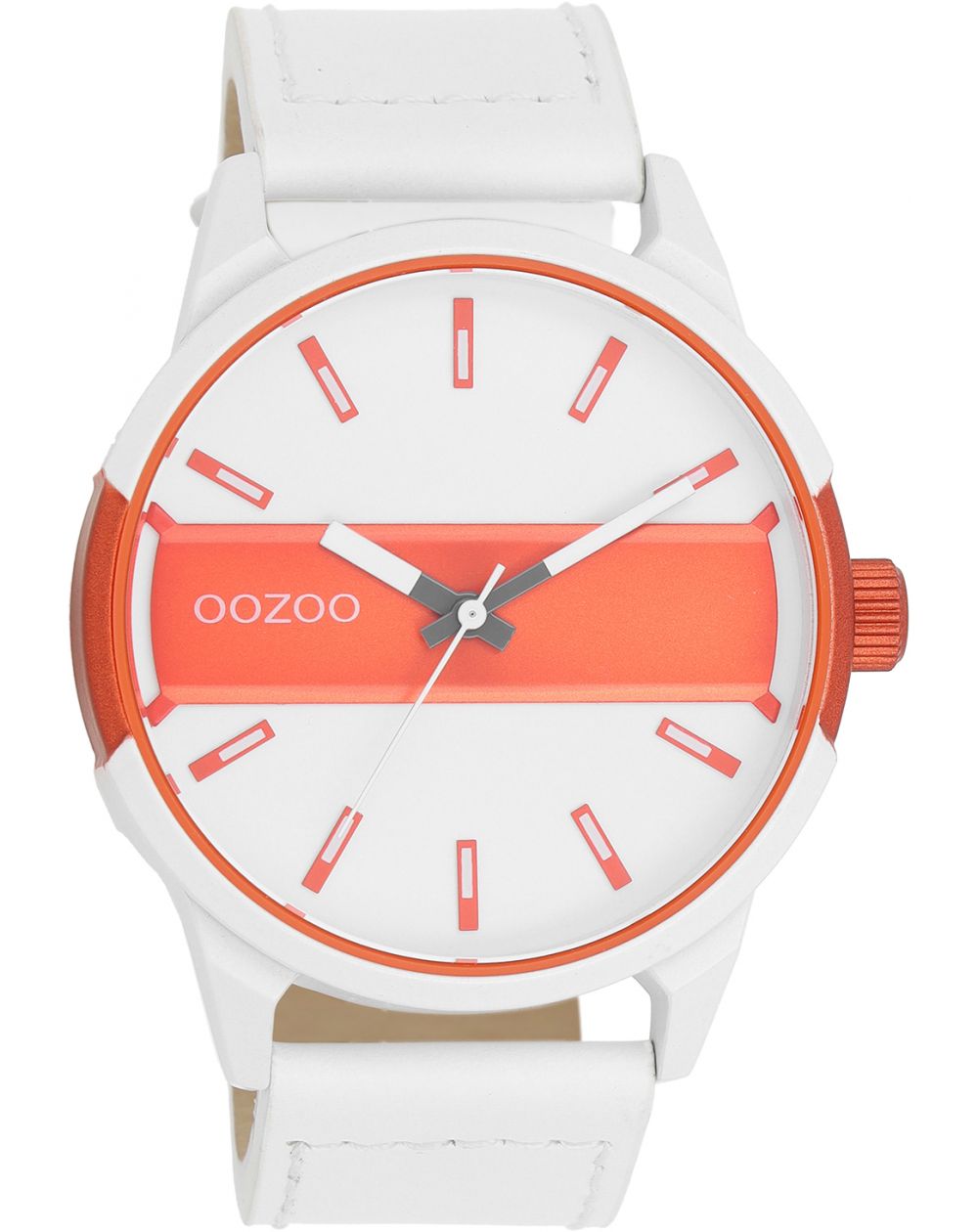 Maak een statement met dit opvallend ronde design voor heren uit de trendy OOZOO Timepieces collectie. Model C11316 heeft een wit gestikte leren band en een matwit/neonoranje horlogekast van 48 mm. Met zijn witte wijzerplaat, neonoranje gestreepte cijfers en wit/zwarte wijzers biedt dit horloge een krachtig en dynamisch fashionstatement. Een essentieel onderdeel van elke garderobe, voorzien van mineraalglas en een metalen behuizing met coating voor optimale duurzaamheid. De aanwezigheid van een RVS achterplaat garandeert niet alleen nikkelvrije veiligheid, maar ook optimaal comfort. Het Japanse 2ATM-uurwerk zorgt voor ongeëvenaarde precisie. Bovendien wordt het geleverd met een garantie van 2 jaar , wat de eigenaar extra gemoedsrust biedt.