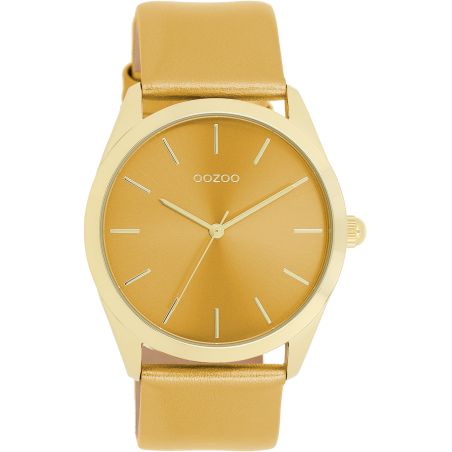 Maak een statement met dit prachtige ronde model voor dames uit de trendy OOZOO Timepieces horlogecollectie. De C11332 valt op door zijn okergele leren band met metallic look en zijn 40 mm goudkleurige metalen horlogekast. Maak een opvallend fashion statement met deze okergele sunray-wijzerplaat, de goudkleurige gestreepte cijfers en bijpassende wijzers. Dit essentiële horloge voor je garderobe is voorzien van mineraalglas en een metalen kast met IP-plating voor optimale duurzaamheid. De roestvrijstalen achterkant garandeert niet alleen veiligheid tegen nikkel, maar ook superieur comfort. Aangedreven door een Japans 2ATM-uurwerk, biedt het betrouwbare precisie om u altijd te vergezellen. Bovendien krijgt u 2 jaar garantie voor volledige gemoedsrust.