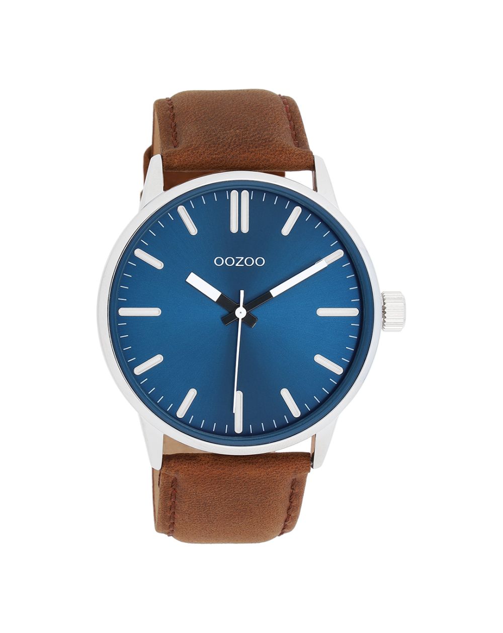 Laat jouw stijl gelden met dit elegante herenhorloge uit de OOZOO Timepieces collectie. Het C11400-model heeft een zilveren kast van 45 mm, een blauwe sunray-wijzerplaat, witte cijfers en een bruine leren band. Met mineraalglas, een Japans 2ATM-uurwerk en 2 jaar garantie is het een mode-must-have.