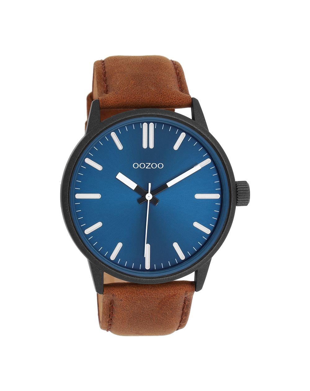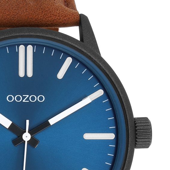 Laat uw stijl gelden met dit mannelijke model uit de OOZOO Timepieces-collectie. Het oozoo C11401 herenhorloge heeft een matzwarte kast van 45 mm en een gestikte bruine leren band. De blauwe wijzerplaat met zonnestraaleffect, de witgestreepte indexen en de tweekleurige wijzers voegen een elegante toets toe. Gegarandeerd 2 jaar en voorzien van een Japans 2ATM uurwerk.