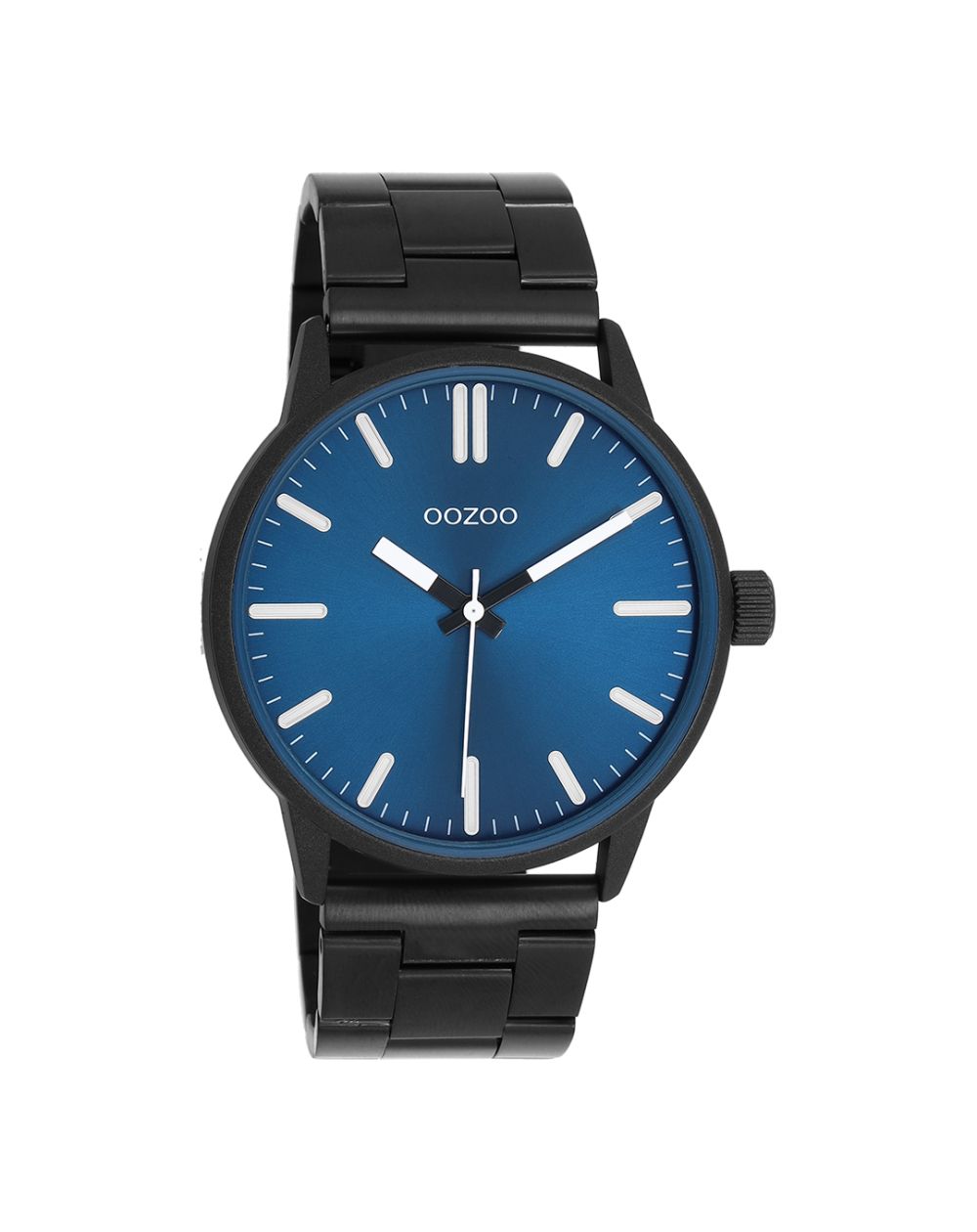 Kies voor elegantie met dit zwarte Oozoo horlogemodel uit de OOZOO Timepieces collectie. Het C11403-horloge heeft een matzwarte kast van 45 mm en een glanzend zwarte roestvrijstalen armband. De blauwe wijzerplaat met zonnestraaleffect, de witgestreepte indexen en de tweekleurige wijzers maken het tot een trendy accessoire. Uitgerust met een Japans 2ATM uurwerk, 2 jaar garantie.