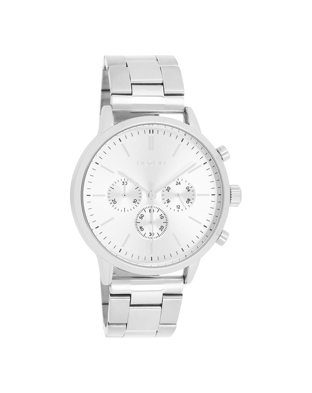 Pronk met verfijnde stijl met dit prachtige ronde herenhorloge uit de trendy OOZOO Timepieces collectie. Het Oozoo C11405 horloge valt op door zijn moderne en elegante ontwerp, met een roestvrijstalen armband met een zilveren afwerking, waarbij matte en glanzende tinten worden gecombineerd voor een verfijnd effect. De zilveren metalen kast met een diameter van 42 mm harmonieert perfect met de eveneens zilveren wijzerplaat, die is voorzien van een subtiel zonnestraaleffect en een chronograafdisplay voor een dynamische uitstraling.