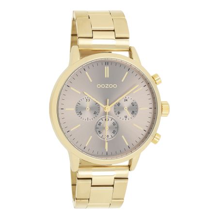 Kies voor elegantie met het OOZOO C11408 horloge , een verfijnd herenmodel uit de trendy OOZOO Timepieces collectie. Het beschikt over een mat/glanzend gouden roestvrijstalen armband en een goudkleurige metalen kast van 42 mm. De taupekleurige wijzerplaat met zonnestraaleffect en chronograaf, vergezeld van goudgestreepte indexen en bijpassende wijzers, zorgen voor een verfijnde toets. Uitgerust met een Japans 2ATM-uurwerk en 2 jaar garantie, is het een mode-essential voor elke garderobe.