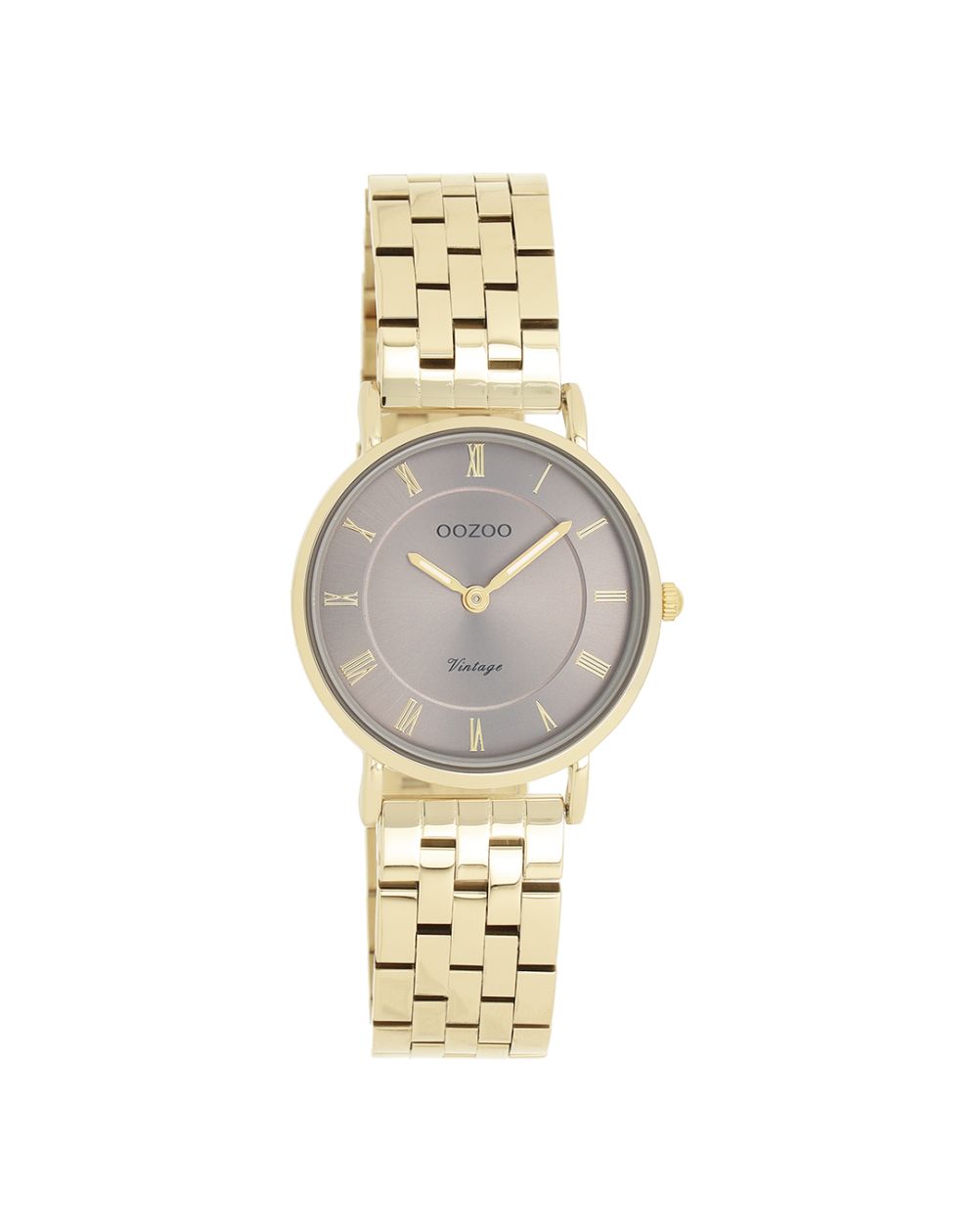 Het vintage horloge OOZOO C20377 belichaamt elegantie en verfijning, waardoor het een must-have accessoire van dit seizoen is. De ronde kast van goudkleurig metaal van 28 mm en de wijzerplaat met taupekleurige zonnestraaleffect voegen een chique en verfijnde toets toe. De glanzende goudkleurige roestvrijstalen armband maakt het een perfect modeaccessoire voor dagelijks gebruik. Mineraalglas, gemonteerd in een dunne 6,7 mm IP-geplateerde behuizing, garandeert duurzaamheid en elegantie. Dit horloge heeft een nikkelvrije roestvrijstalen achterkant en een Japans 2ATM-uurwerk en wordt geleverd met twee jaar garantie. Een perfecte keuze om je outfits op te fleuren!