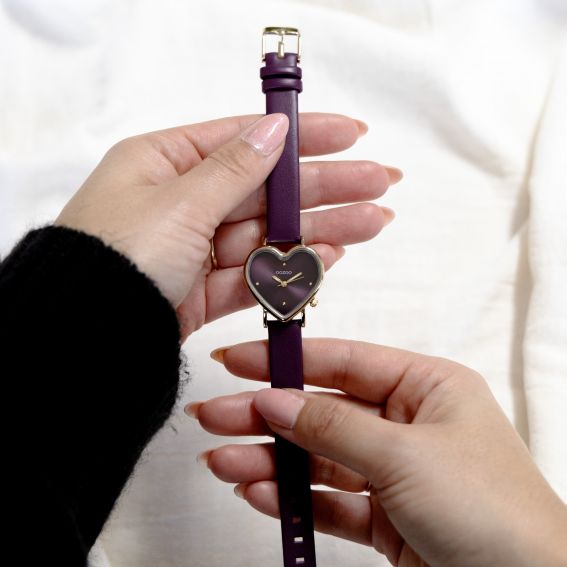 Voeg een vleugje verfijning toe aan je look met het OOZOO C11450 damesharthorloge, uit de trendy OOZOO Timepieces collectie. Met zijn paarse leren band en zijn gouden metalen kast van 28x29 mm valt dit horloge op door zijn moderne en verfijnde design.
