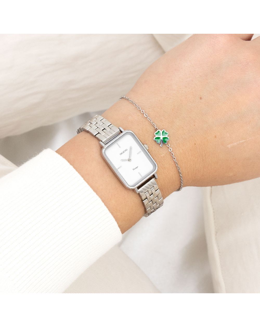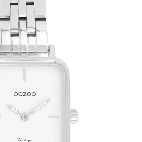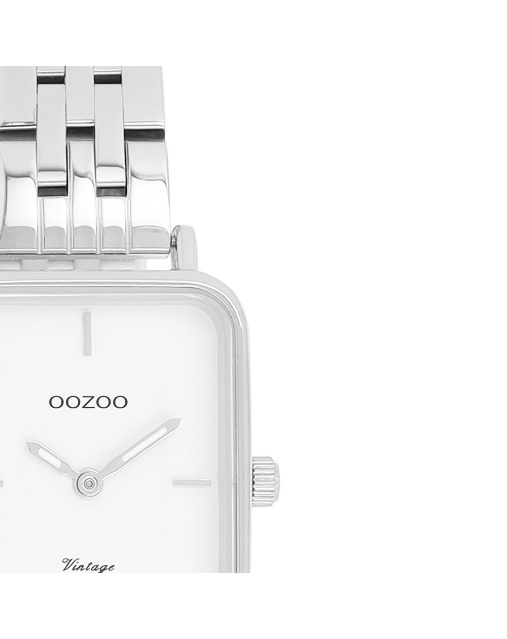 Het model C20416 uit de OOZOO Vintage-collectie combineert strak design met eigentijdse charme en is een echte blikvanger van het seizoen. Het rechthoekige formaat (24 x 28 mm) van zilverkleurig metaal en de lichtgevende witte wijzerplaat geven het horloge een discrete elegantie die bij alle stijlen past.